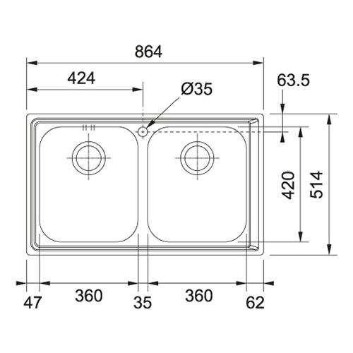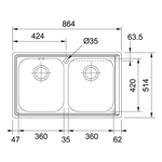 Lavello 2 vasche (86,4x51,4cm) Nex 220 NEPTUNE Inox Spazzolato 127 0059 656