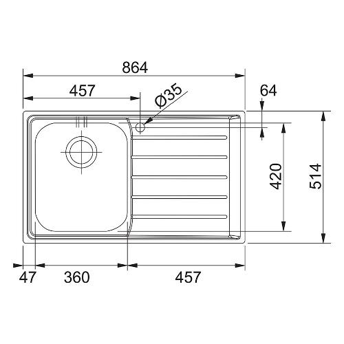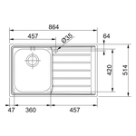Lavello 1 vasca (86,4x51,4cm) Nex 211 Dx NEPTUNE Inox Spazzolato 127 0059 654