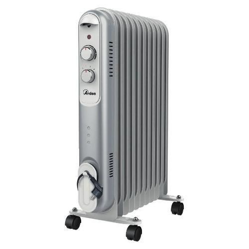 Radiatore ad olio con 11 elementi riscaldamenti. Termostato di regolazione della temperatura. 3 livelli di potenza. Spia di funzionamento. Vano avvolgicavo. Interruttore anti ribaltamento. Sistema di protezione anti surriscaldamento. Resa 70 m³.