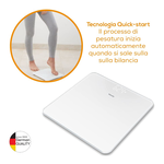 Pura e chiara, la bilancia in vetro con display LED Magic è adatta a qualsiasi bagno. Con il motivo a piastrelle è senz'altro un elemento di richiamo.