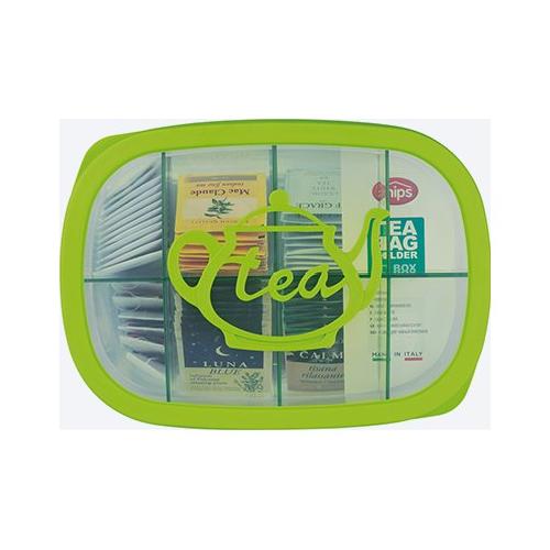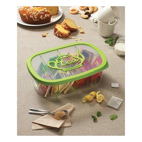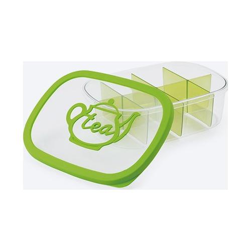Scatola per riporre e conservare te, camomille e tisane in busta con separatori estraibili. La chiusura ermetica permette di preservare a lungo gli aromi