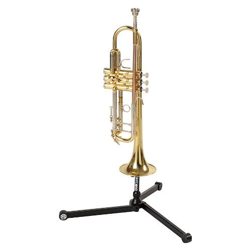 Stand compatto per tromba o cornetta con campana ammortizzata da molla e regolabile in altezza. Costruzione solida tutta in metallo, la base treppiede assicura massima stabilità. La campana di appoggio è ricoperta da una morbida gomma anti graffio per proteggere la finitura dello strumento. L'originale design permette di chiudere rapidamente il treppiede, diventando estremamente compatto e pratico da portare in borsa ed in tour.