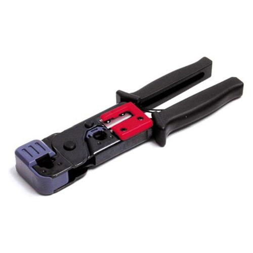 Un singolo strumento per crimpare i connettori dei cavi RJ11 e RJ45 (con spelafili integrato)