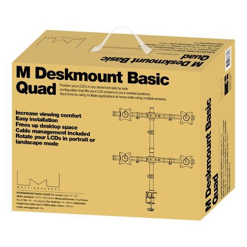 Flessibile, sinuoso ed elegante: M Deskmount Basic Quad è l’ideale per installazioni multimonitor in call center, sale di controllo, ambienti ospedalieri e per rendere più funzionale lo spazio del proprio ambiente di lavoro.