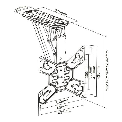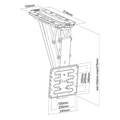 Supporto monitor TV soffitto ( 30 Kg ) VESA 400 x 400 MULTIBRACKETS Motorizzato Black MB1028