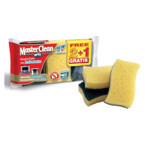 Morbida spugna forte con antibatterico in confezione 2+1 gratis! La forma ergonomica ne garantisce un utilizzo sempre confortevole, mentre la struttura a pori larhi della spugna assicura massima facilità di risciacquo. Uno speciale trattamento rende la fibra abrasiva oleofobica, impedendole di assorbire lo sporco e l’unto rimossi. Spugna e fibra abrasiva sono trattate con un prinicipio antibatterico per inibire la proliferazione dei batteri nel prodotto. Raccomandata per rimuovere lo sporco difficile e le incrostazioni da stoviglie, pentole, posate, piano cottura, forno e da tutte le superifici non delicate.