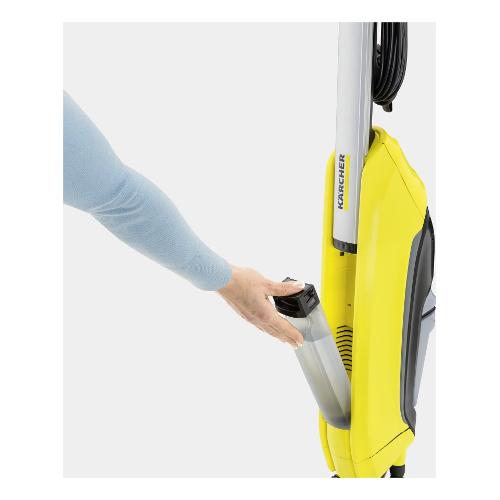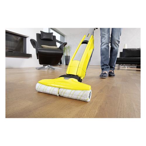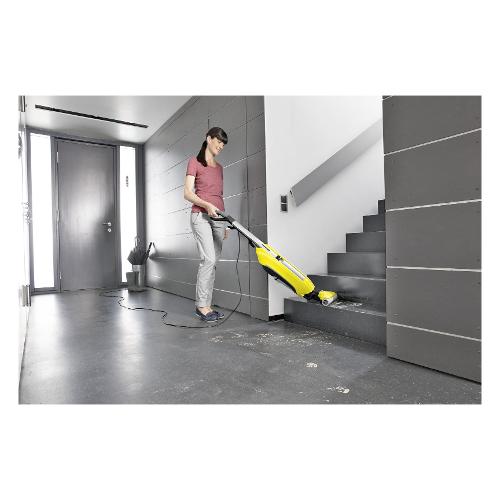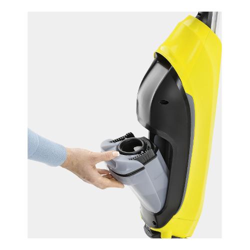 La funzione 2 in 1 della lavapavimenti Kärcher FC 5 ti consente di pulire e raccogliere lo sporco moderato in un solo passaggio. Lavare i pavimenti non è mai stato più facile, veloce e completo. Passare l'aspirapolvere non è più necessario! I rulli in microfibra rotanti, inumiditi automaticamente, raccolgono continuamente lo miscela di acqua e sporcizia, che va a finire in un apposito serbatoio separato: nessun contatto con lo sporco!