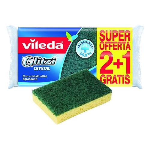 Glitzi crystal è la spugnetta da cucina di vileda ideale per qualsiasi tipo di sporco. Dotata di ottima capacità sgrassante, i frammenti di cristallo contenuti in questa spugna abrasiva abrasiva permettono di rimuovere più efficacemente e con meno fatica lo sporco ostinato. Lo speciale trattamento antibatterico aiuta a prevenire la proliferazione dei batteri nella fibra al 99,9% e previene quindi i cattivi odore della spugna abrasiva. L'elevato grado di assorbenza è garantitp dalla speciale struttura a pori dilatati della spugna abrasiva gialla sintetica.