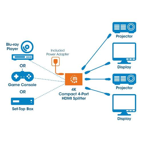 Replica un segnale audio - video digitale Ultra-High-Definition (UHD) per quattro schermi HDMI UHD