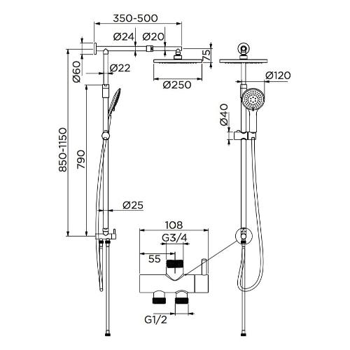 Colonna doccia 3F Malibù (85-115cm) Cromo 0091CR
