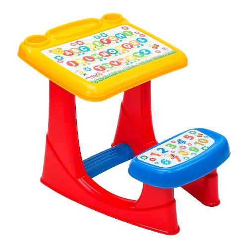 Su questo fantastico banco scuola potrai disegnare, leggere e colorare, potrai imparare grazie alle lettere e i numeri stampati sopra, con tre comodi spazi portaoggetti, facile da assemblare