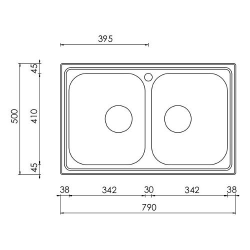 Lavello 2 vasche (79x50cm) LEVANTE Inox Satinato 015722XCSSP