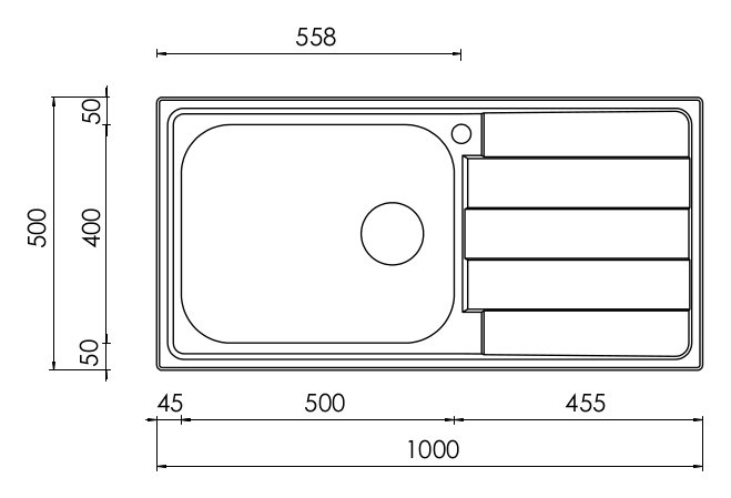 Lavello 1 vasca (100x50cm) LEVANTE Inox Satinato 015726SCSSP