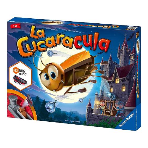 La linea del gioco de “la cucaracha” si amplia con l’introduzione di una divertente versione: la cucaracula, il piccolo e simpatico insetto vampiro. In una notte di luna piena, la cucaracula si aggira per le stanze buie del castello. Scova il vampiro dispettoso con la luce, sorprendilo e scaccialo. Ma attenzione, lo straordinario insetto elettronico hex-bug nano si muove come impazzito. Chi riuscirà a conquistare più gettoni-candela e a catapultare la cucaracula fuori dal castello?