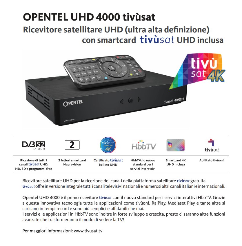 Decoder TIVUSAT tivùsat UHD 4000 TVS e HbbTV Black UHD4000TVS