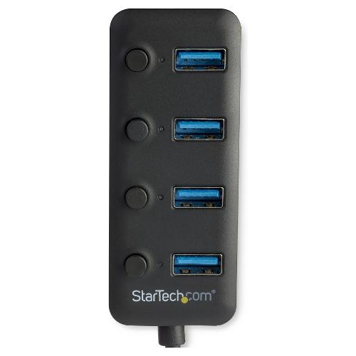 Questo hub USB 3.0 portatile consente di aggiungere con facilità quattro porte USB 3.0 Type-A a un computer laptop ed è dotato di interruttori di alimentazione singoli per risparmiare energia. È sufficiente inserirlo nella porta USB Type-A del laptop. Inoltre, è alimentato tramite bus per la massima portabilità.
