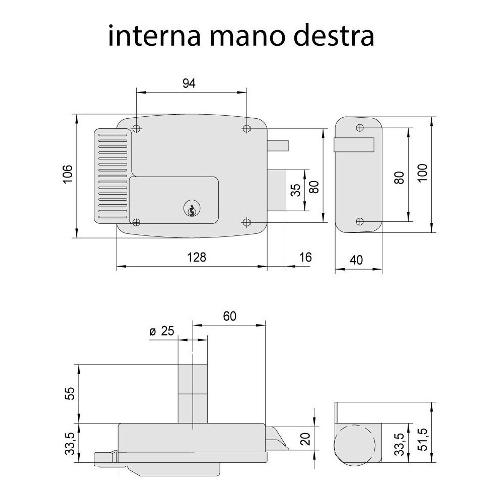 Corpo in acciaio con rivestimento in zinco -Barriera di protezione contro tentativi di effrazione nella zona dello sgancio elettrico - scrocco autobloccante: a porta/cancello chiuso, l'arretramento del pistone blocca lo scrocco