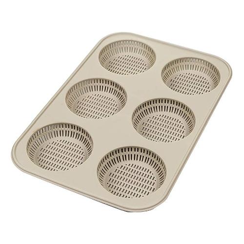 Il piacere di creare con le proprie mani, di scegliere con cura le materie prime, di preparare piatti genuini per sé stessi e per i propri cari. Con lo stampo in silicone burger bread di silikomart trasformerete un semplice panino in un burger gourmet. La trama perforata dello stampo permette la libera circolazione del calore senza condensa ottenendo 6 pagnotte per hamburger croccanti dal colore dorato e dalla cottura omogenea. Godetevi le sensazioni del pane tradizionale fatto in casa.