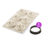 Un nuovo modo di concepire la crostata e rendere questo dolce della tradizione ancora più accattivante e contemporaneo. Il kit mini tarte twist di silikomart è composto da due elementi: 6 anelli microforati per creare il guscio di frolla e uno stampo in silicone per creare la decorazione a spirale. Gli speciali anelli da 80 mm di diametro sono realizzati in un nuovo materiale plastico antiaderente perfetto per un’omogenea cottura in forno. Il kit mini tarte twist è un vero concentrato di dolcezza e contemporaneità per realizzare in modo davvero semplice delle crostate moderne impreziosite da una straordinaria decorazione.