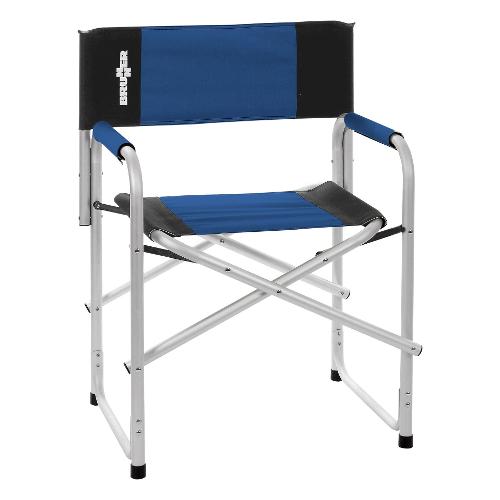Sedia regista con struttura pieghevole in alluminio. Schienale e seduta sono in Poliestere antiscivolo. Seduta, schienale e braccioli sono imbottiti. Con meccanismo di chiusura di sicurezza
