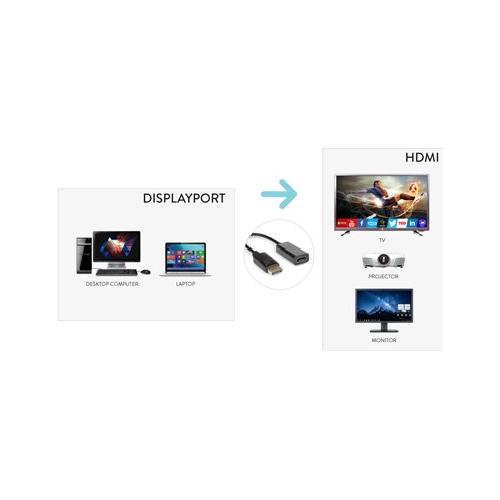 L'adattatore video da DP DisplayPort a HDMI trasforma la porta DisplayPort del computer in uscita video HDMI e permette di collegare monitor, televisori e proiettori HDMI a computer con uscita DisplayPort. L'adattatore supporta risoluzioni fino a 1080p.