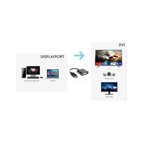 L'adattatore video da DP DisplayPort a DVI trasforma la porta DisplayPort del computer in uscita video DVI (24+5) e permette di collegare monitor, televisori e proiettori DVI a computer con uscita DisplayPort. L'adattatore supporta risoluzioni fino a 1080p.