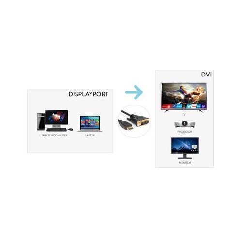 Il cavo video da DP DisplayPort a DVI permette di collegare una sorgente DisplayPort con un monitor dotato di ingresso video DVI. Il cavo è lungo 180 cm e schermato per ridurre le interferenze e assicurare la trasmissione video alla massima qualità. Supporta risoluzioni fino a 1080p.