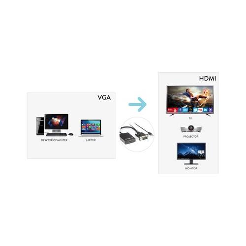 L'adattatore video da VGA a HDMI trasforma la porta VGA del computer in uscita video HDMI e permette di collegare monitor, televisori e proiettori HDMI a computer con uscita VGA. L'adattatore integra il cavo audio con jack 3,5mm e supporta risoluzioni fino a 1080p. Cavo USB di alimentazione in dotazione.