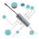 Ampliate la Vostra scrivania di lavoro con un monitor HDMI esterno, oppure collegando un proiettore o un televisore all’interfaccia HDMI. Con questa Stazione dock avrete a disposizione anche 3 porte USB 3.0, 1 porta RJ-45 Ethernet GLAN, 1 porta USB-C Power Delivery, 1 connettore audio jack combo (cuffie e microfono), 1 lettore di schede SD e 1 lettore di schede microSD.