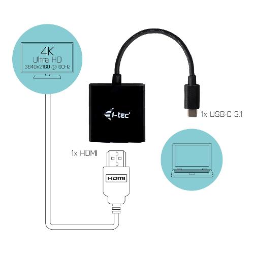 Questo adattatore amplia la scrivania con un monitor esterno HDMI, un proiettore o un televisore dotato di interfaccia HDMI e permette il loro collegamento a notebook, tablet o PC tramite un nuovo connettore USB-C o Thunderbolt 3 siccome supporta la trasmissione sia del segnale audio sia del segnale video 4K Ultra HD con risoluzione fino a 3.840 x 2.160 pixel.