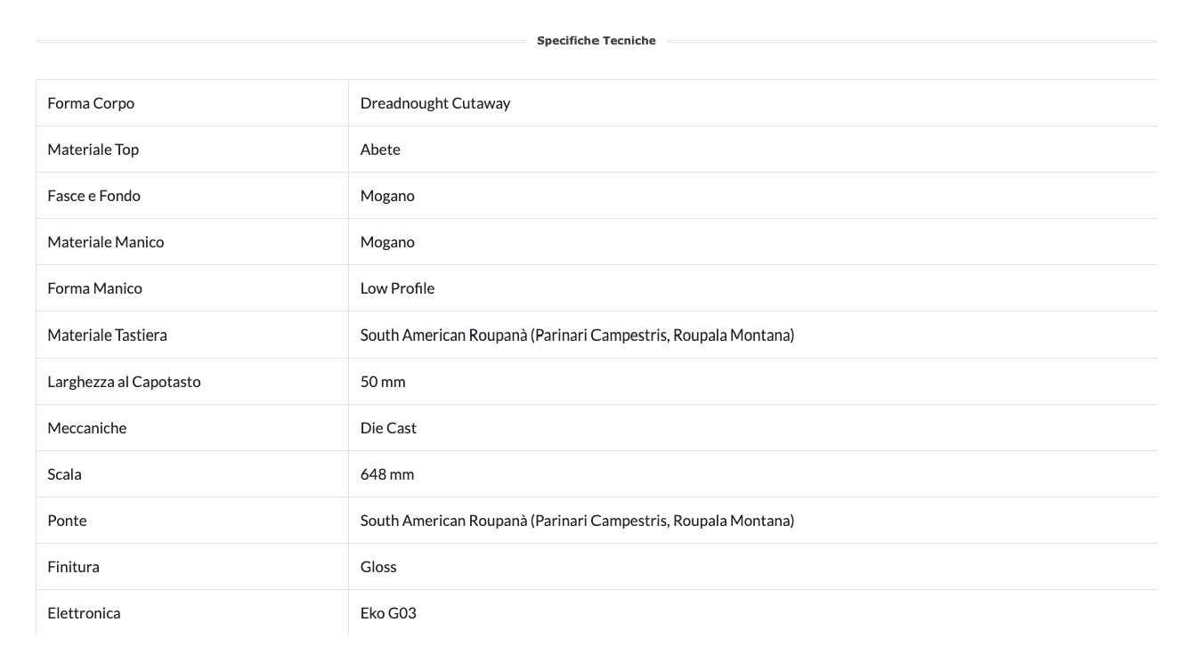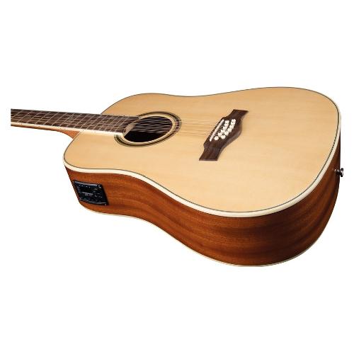 La Chitarra Acustica Eko NXT D100e XII è caratterizzata da Top in Abete abbinato a Fasce e Fondo in Mogano, manico in Mogano e Tastiera in South American Roupanà. Una chitarra acustica 12 corde perfetta per i principianti