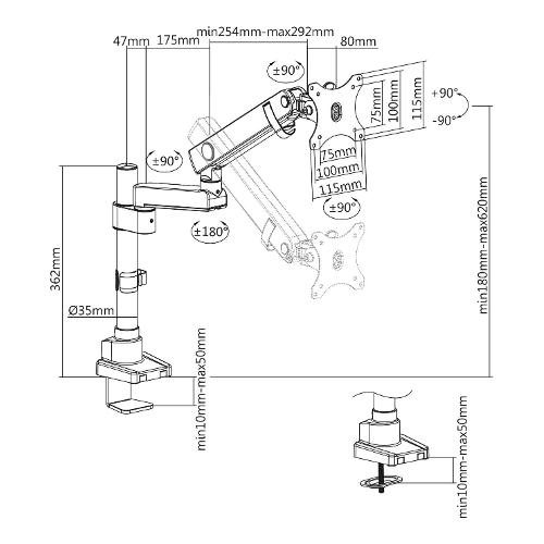 Dotato di un avanzato sistema di gestione dei cavi per tenere i cavi video e di alimentazione ordinatamente nascosti e fuori dalla vista, e include opzioni di montaggio con morsetto e gommino, è perfetto praticamente per qualsiasi workstation. La regolazione in altezza e i bracci regolabili in modo indipendente consentono più angoli di visualizzazione, in modo da poter posizionare il monitor dove è più comodo da usare.