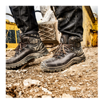 Pelle bovina ingrassata con rinforzo aggiuntivo in TPU, suola antiperforazione FAP, puntale fibra di vetro. Fodera traspirante con soletta Comfit Relax memory Foam