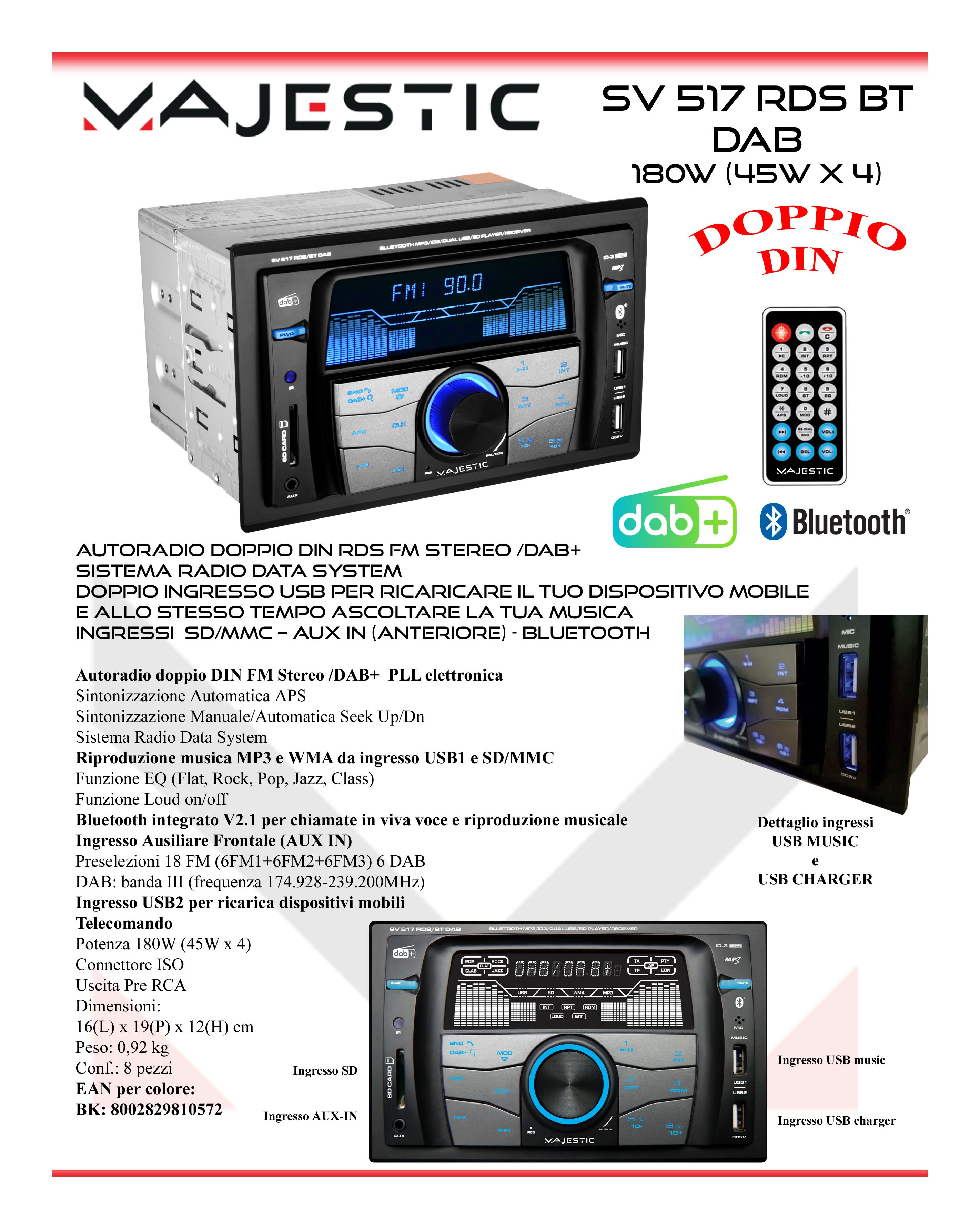 Sistema audiocar SV 517 Rds Bt Dab 100517 4 x 45w