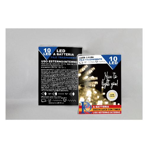 Filo Trasparente 10 luci - LED Bianco caldo (2 + 1 mt) 8 Giochi di luce CHRISTMAS IP44 D1823