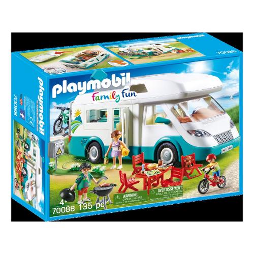 Il tetto e la parete laterale sono removibili in modo da assicurare una perfetta giocabilità. Dotato di angolo cottura, area soggiorno, bagno e posti letto per tutta la famiglia. La jet bag offre spazio per riporre le attrezzature da campeggio. Misure: 35 x 14 x 15 cm