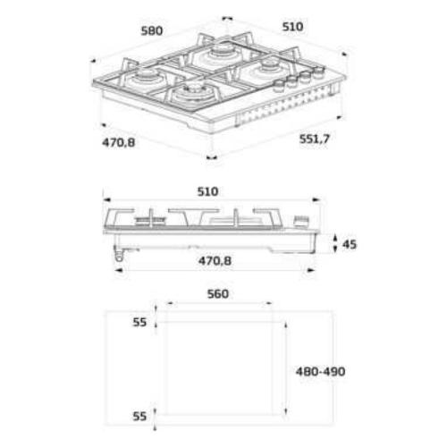 Piano cottura gas 4 zone Hiag 64224 Savr Avena (60cm)