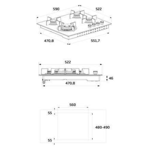 Piano cottura gas 4 zone Hilg 64222 Szg Grigio pietra (60cm)