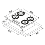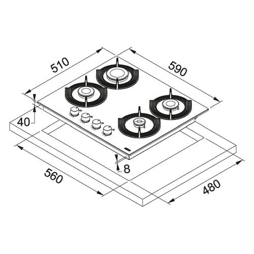 Piano cottura gas 4 zone MARIS FREE Fhmf 604 4Gc Bk Black (60cm)