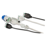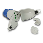 In tecnopolimero alta resistenza meccanica e termica. Spine e prese con spinotti e alveoli attivi protetti da contatti diretti accidentatli e/o volontari
