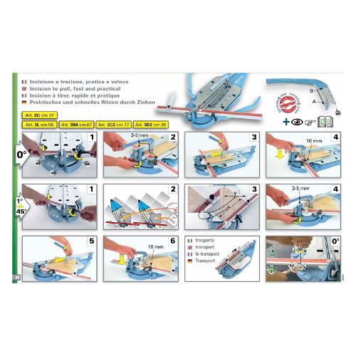 Tagliapiastrelle sigma 2g - 37 cm con incisione a trazione e sistema di cambio rapido dell'impugnatura di incisione.