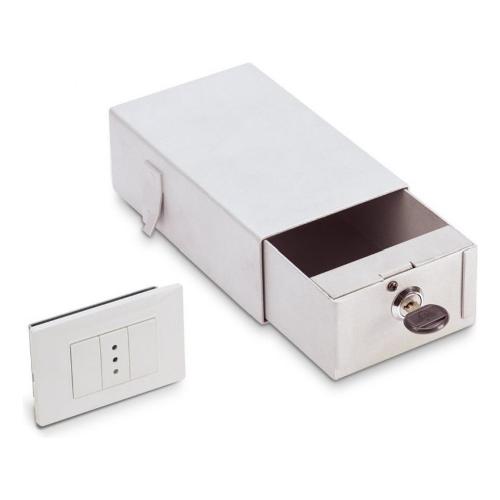 fornita con finta presa e placca Vimar Plana di colore bianco, che può eventualmente essere sostituita con altre prese standard in commercio per renderla identica alle altre installate all’interno dell’abitazione