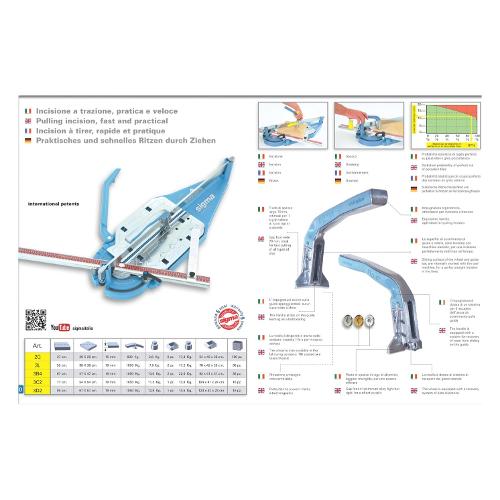 Tagliapiastrelle sigma 3l - 55 cm con incisione a trazione e sistema di cambio rapido dell'impugnatura di incisione.
