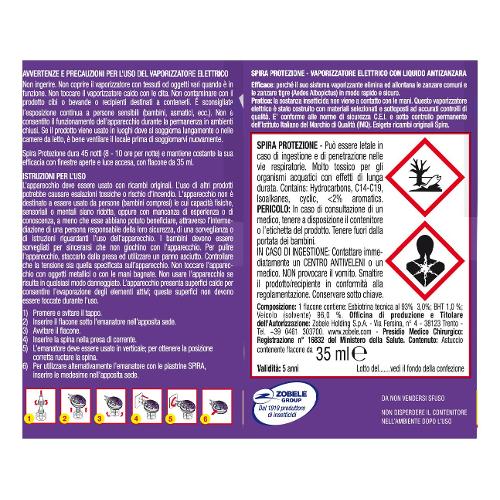 Compatibile con tutti i diffusori Spira. Inodore. Efficiace fino a 45 notti. Presidio Medico Chirurgico