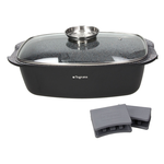Articolo della linea ambiziosa con fondo ad alto spessore alluminio + acciaio termoradiante per una diffusione ottimale del calore. Interno antiaderente a 4 strati effetto granito Rinforzata con particelle