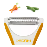 Pedrini pelaverdure in plastica con bordi in gomma, lama oscillante taglio affilato in acciaio inossidabile ideale per carote e zucchine.