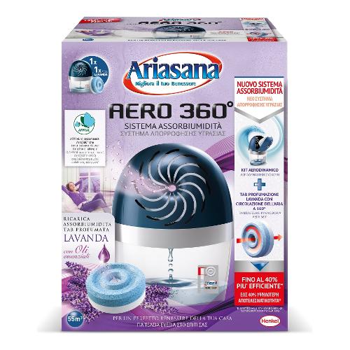 Nuovo kit ariasana assorbiumidità aerodinamico con tab profumata alla lavanda.