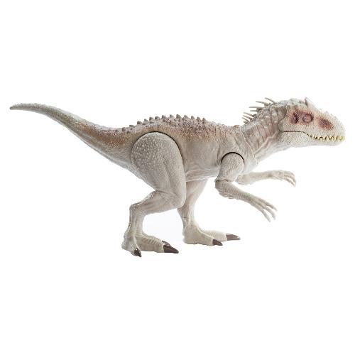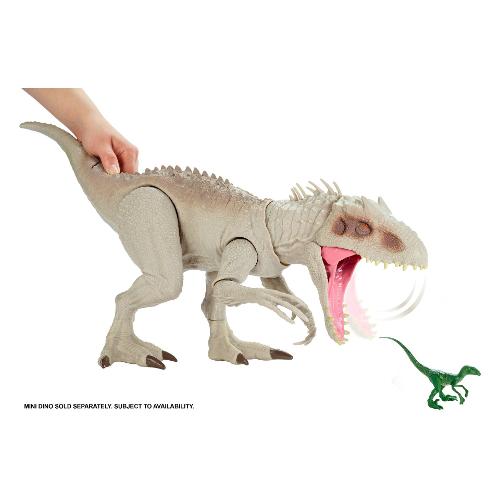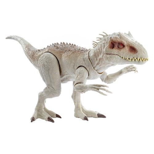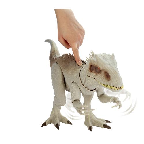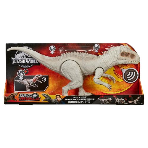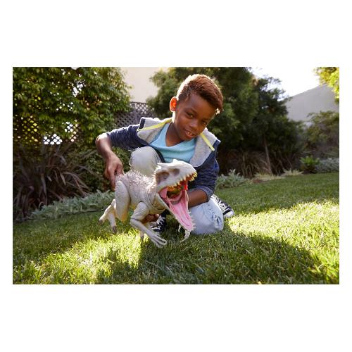 Entra nel vivo delle avventure di Jurassic World con combattimenti tra dinosauri da togliere il fiato. L'Indominus Rex, un abominio ibrido nato nei laboratori InGen, è il dinosauro terrificante e pericoloso creato dalla scienza. Ispirato al film, questo Indominus Rex di grandi dimensioni è alto 21.5 cm e lungo 58 cm circa, per seminare paura e distruzione ovunque! Le particolarità che saltano subito all'occhio includono tetre scaglie bianche, denti feroci e avambracci lunghi e simili a pugnali. L'Indominus Rex è dotato di un sistema di movimento e di attivazione dei suoni a due pulsanti: premi il pulsante al centro della schiena per attivare il movimento del braccio ed effetti sonori realistici che ricordano delle lame, e premi quello alla base della coda per attivare la mascella tritatutto e il ruggito! Ma soprattutto, l'Indominus Rex può piegarsi verso il basso per raccogliere e inghiottire per intero action figure umane da 9.5 cm. Una luce LED all'interno della gola emana un bagliore rosso, rivelando la presenza di un'action figure umana. Interpreta scene di combattimenti feroci con l'Indominus Rex e rivivi le emozionanti avventure e il panico del film. Questo dinosauro include una fantastica card Dino Rivals da collezionare con tutte le informazioni principali sui combattimenti e le sue caratteristiche.