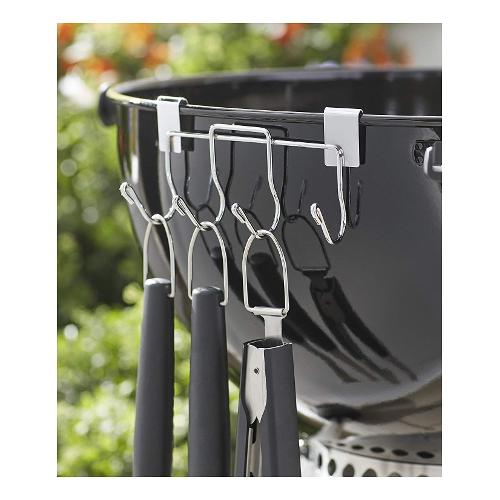 Facilita e organizza la tua esperienza con il barbecue per concentrarti su quello che conta davvero: la cucina, il cibo e le persone intorno a te. I ganci per gli utensili consentono di appendere pinze, spatole e altri utensili da cucina per averli sempre a portata di mano, sul kettle.