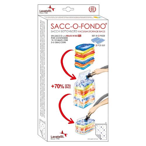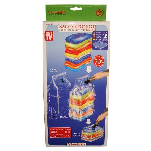 Busta salvaspazio con valvola aspirazione compatibile con tutti gli aspirapolvere. Può contenere 10-12 maglioni o 3-5 giacconi, ne riduce il volume fino al 70%